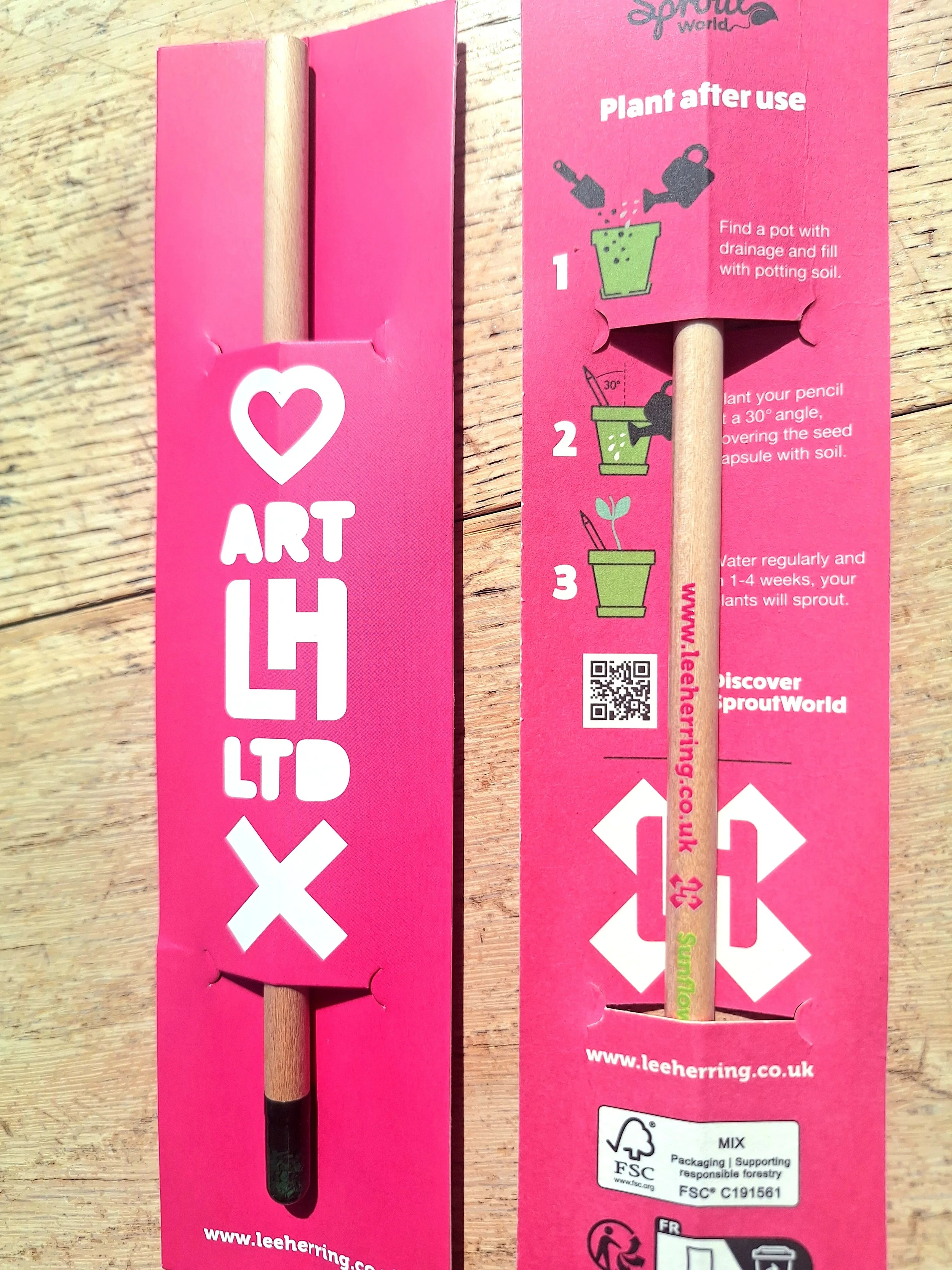 A branded graphite pencil that once used can be planted in the soil and will grow into a flower (no joke…there’s a pocket of seeds on the end)