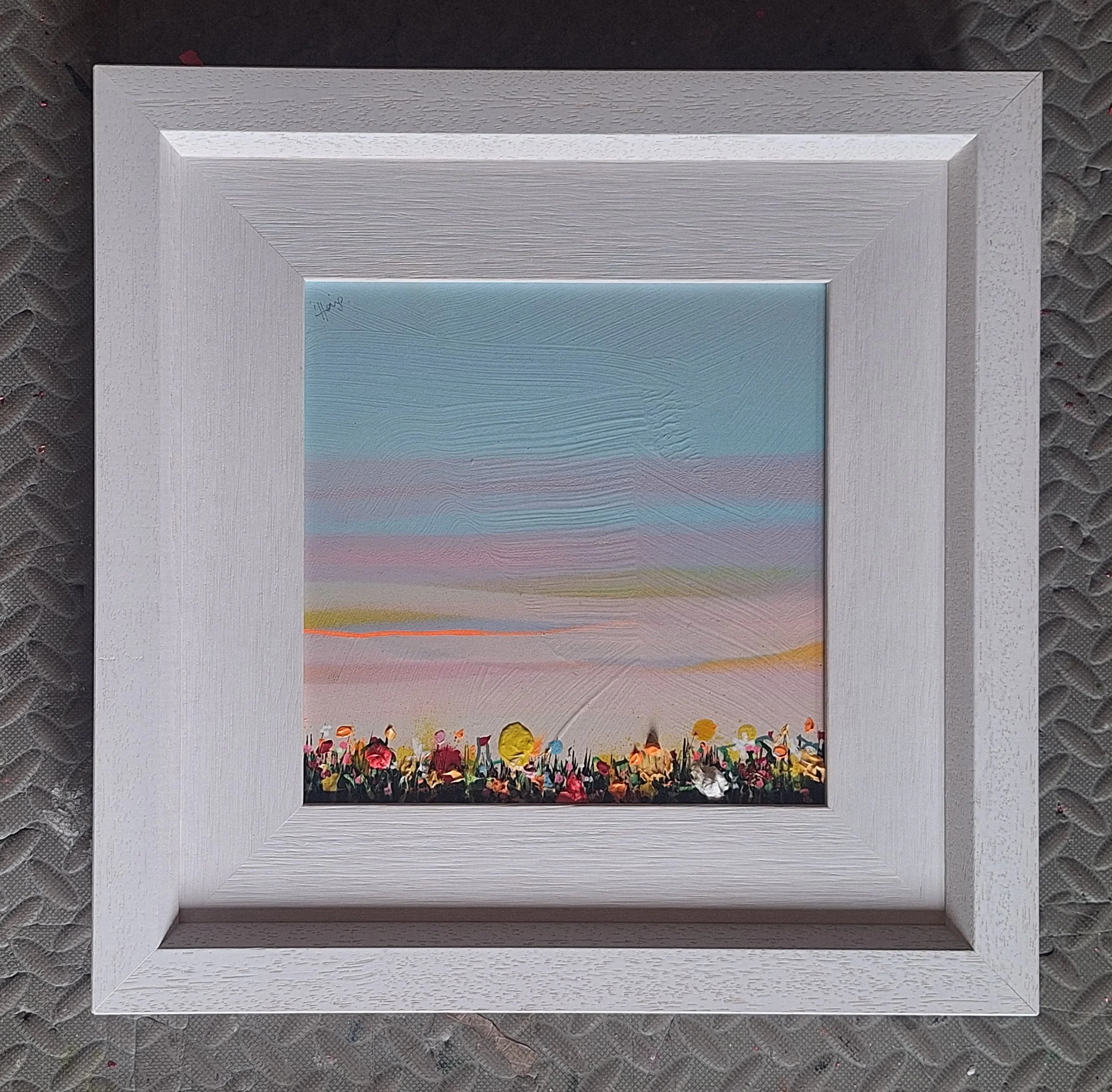 Original mixed media painting on board. Supplied framed in white. Framed dimensions are 37 x 37cms.